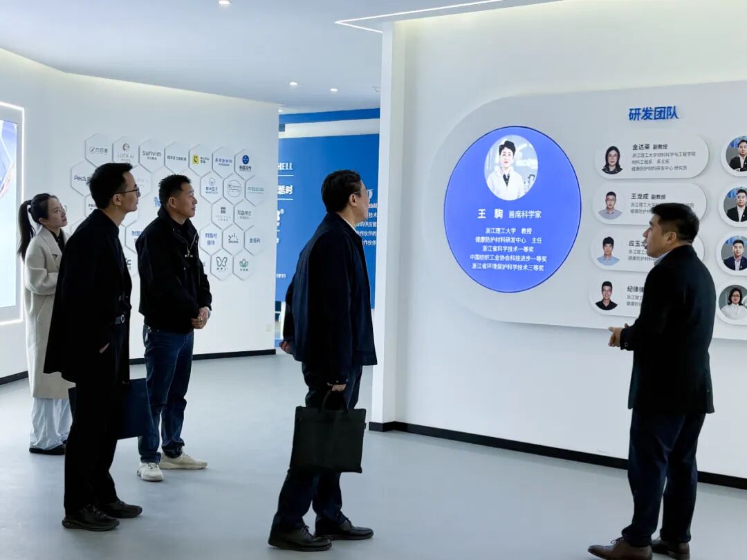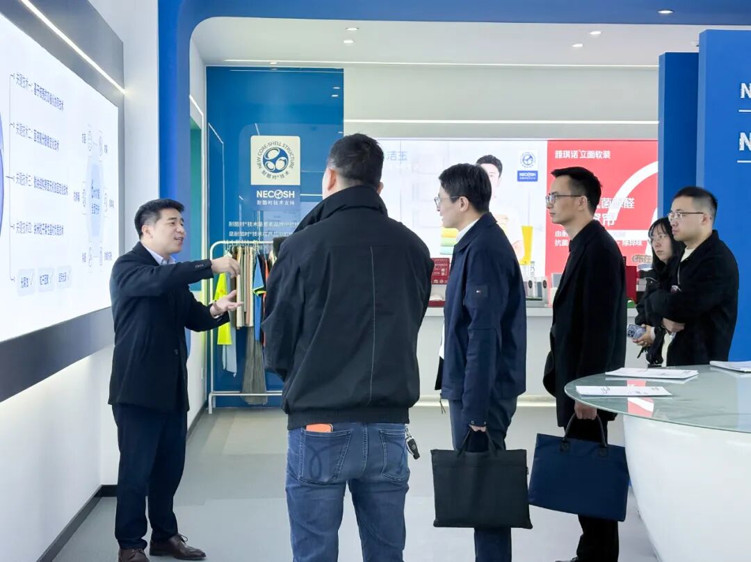 在领导一行参观浙江耐酷时产品展厅时,由副总经理周新伟介绍了耐酷时公司成立背景,发展优势及耐酷时生态圈等公司发展近况。